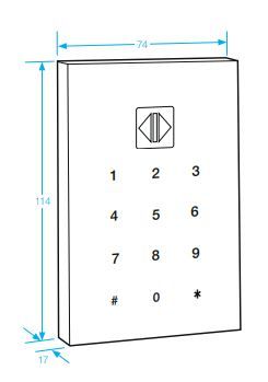 Operating voltage 12Vdc ABS Plastic Allows up to 1000 users Illuminated Touch sensitive Pin / Prox / Pin & Prox Aux weigand output LED display Dimensions: 86mm x 21mm x 86mm