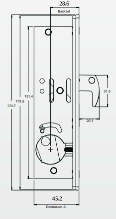 Narrow style hookbolt deadlock to suit mortice cylinder 31/32in backset