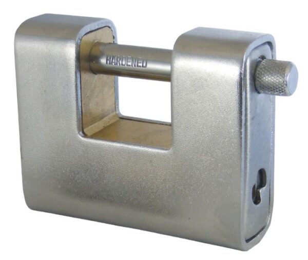 The Asec sliding shackle padlock is designed to be robust and have a high resistance to attack. It is ideal for shutter or link chain applications where security is an issue.