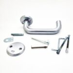 Lever on sprung rose with blind rose. Complete with bolt through fittings and spindle. SCP finish.