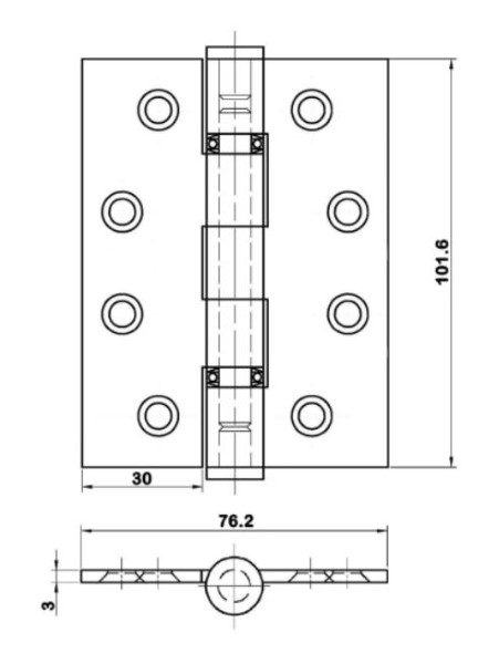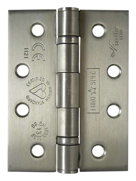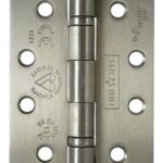 Fully certified high performance hinges. BS EN1935 class 13. 102 x 76mm x 3mm. Double Ball Race Hinge suitable for doors upto 120kg in weight. Use with 1mm Graphite based Intumescent for FD30 or 60 (MANIPAD30). Finish: Type 201 Satin Stainless Steel