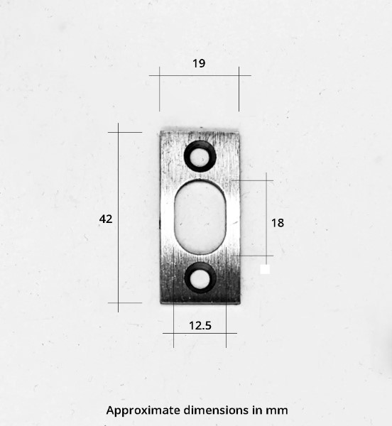 Receiver for necked/straight shoot bolt or flush bolt. Elongated 12.5mm wide hole.