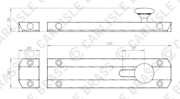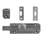 Stylish surface mounted door bolt. Smooth operation, integral ball and spring mechanism for positive location of the bolt when closed. Flat sliding barrel offering more security than a conventional barrel bolt.