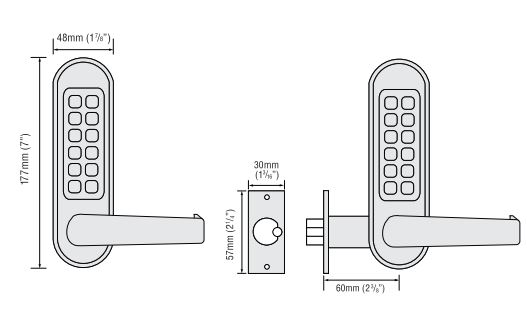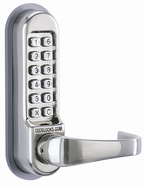 Heavy duty tubular mortice latch. The outside lever handle will retract the latch after a correct code is entered. The spring loaded latchbolt will lock automatically when the door is closed.
