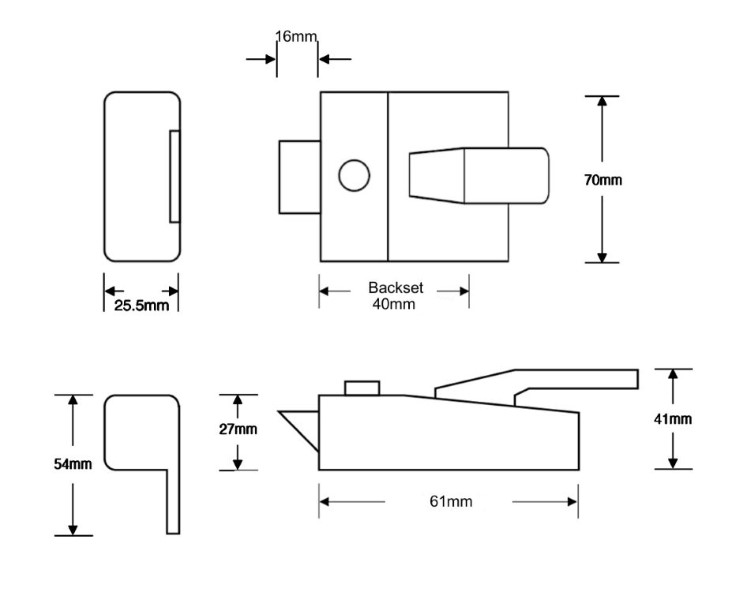 Can be fitted onto doors up to 57mm thick (or 54mm if used with a cylinder pull)