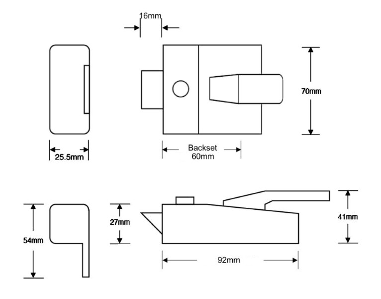 Can be fitted onto doors up to 57mm thick (or 54mm if used with a cylinder pull)