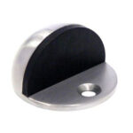 A Contract Hooded Oval Shielded Floor Mounted Door Stop. Finish: Satin Stainless Steel.