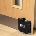 Fire doors are heavy and cumbersome and can prove a danger for young, elderly and disabled people. This is why 64% of premises visited by the fire service have wedged open fire doors. This can be extremely dangerous in the event of a fire and is a contravention of fire safety regulations. Dorgard is the ideal solution, being a wireless unit it takes under 5 minutes for you to screw it to the bottom of the door. Dorgard will then hold your doors open at any angle allowing freedom of access throughout your building. Utilizing the latest in sonic technology Dorgard will listen for a continuous fire alarm of 65dBA or higher which once heard will close your doors for you.
