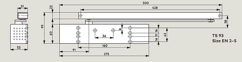 Dorma TS93G EN2-5 Fig.66 or 16. Cam action door closer to EN 1154 & CE mark with guiderail. Contur design with rapidly decreasing opening torque/force.