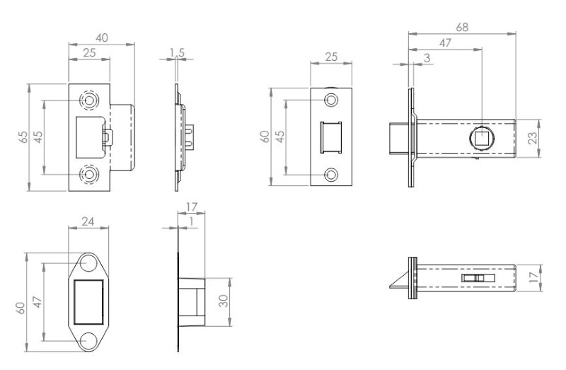 Heavy Duty Sprung Tubular Latch 64.5mm x 23mm. Backset 82mm.