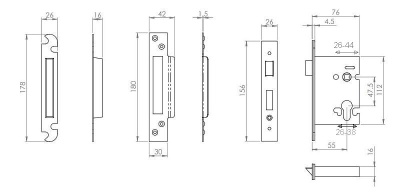 Bolt Through Lock (38mm Bolt Holes) To Suit Bolt Together Door Handles