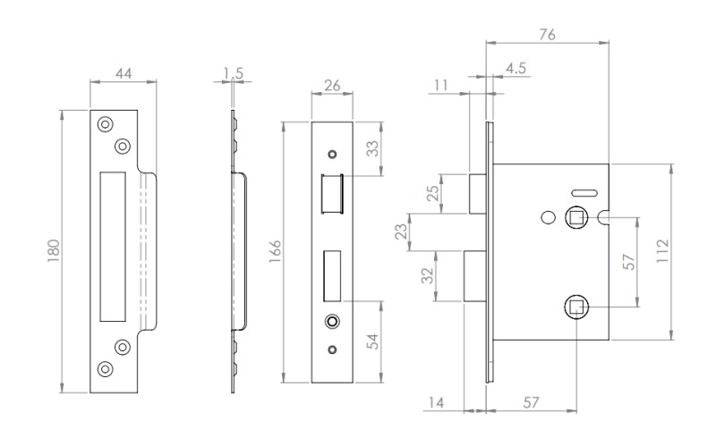 Bolt Through Lock (38mm Bolt Holes) To Suit Bolt Together Door Handles