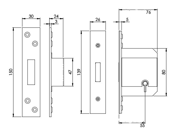 EASI-T 5 Lever Mortice deadlock, backset 76mm