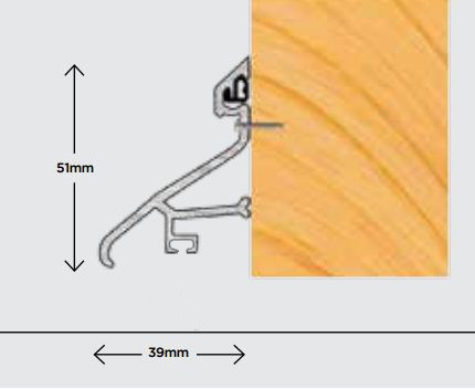 Mill finish aluminium rain deflector. 915mm long. Aluminium/silver finish with black plastic end caps.