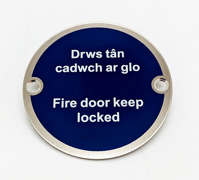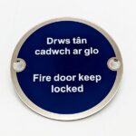 Welsh And English Text: Fire Door Keep Locked. Drws Tan Cadwych Dan Glo.