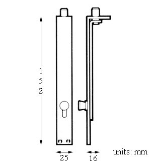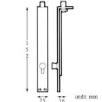 Knob slide action flush bolt, 150mm.