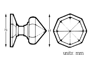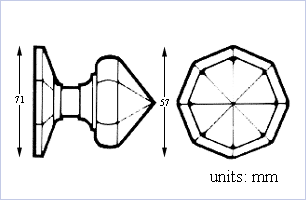 Frank Allart Octagonal knob mortice furniture 64mm. All the pulling force transferred through the spindle. Comes with a threaded spindle.