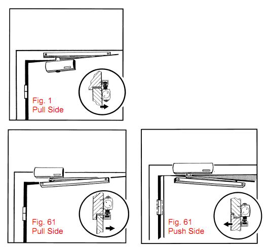 Door closer TS 1500 with guide rail for doors with up to 750 mm leaf widths.