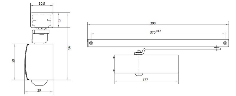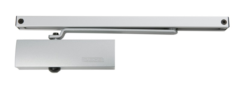 Door closer TS 1500 with guide rail for doors with up to 750 mm leaf widths.