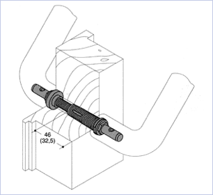 HEWI type BA5.2.43.48 for double sided fixings to solid wood, plastic and 2 to 3 chamber aluminium sections. Drill hole in door = 14mm diameter. Door thickness 43 to 48mm.
