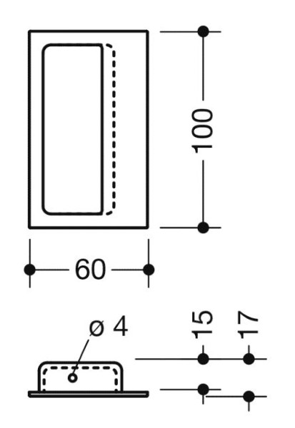 Made of high-quality polyamide, rectangular shape 100 x 60 mm, recess dimensions 90 x 42 mm, inlet depth 15 mm, with grip recess on one side.