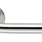 Lever On Screw On Rose Satin Stainless Steel. 19mm Diameter Lever On Round Sprung Screw On 50 X 6mm Rose. Grade 4 Category of Use. Grade 7 Durability. Grade 316 Stainless Steel. Dimensional Sizes Meet The Requirements Of BS EN 8300.