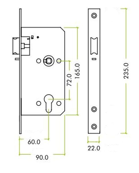 Home » Locks » MORTICE AUTO NIGHTLATCHES » Mortice Auto N/Latch Euro DIN 72cc 60/90mm SS (EACH)