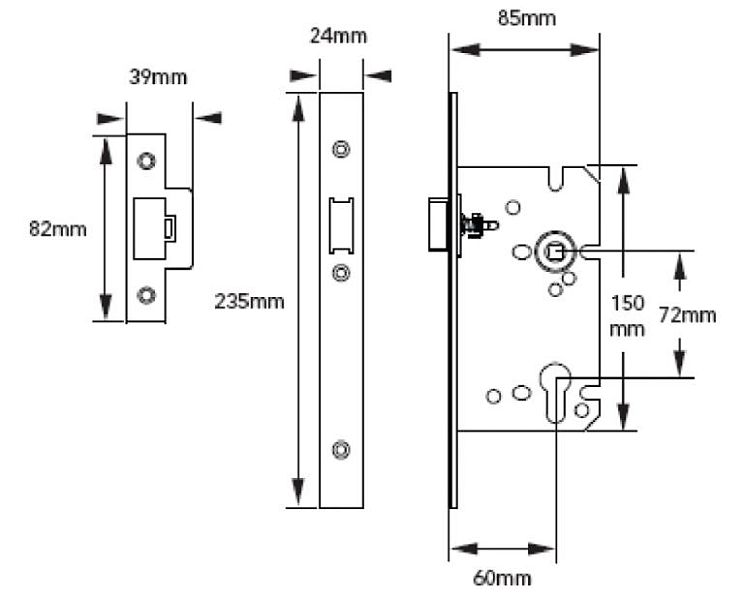 Din Standard Mortice Auto N/latch Lock Case With 60mm Backset And 72mm Centres. En12209. Fd30/60. Finish: Satin Stainless Steel. Category Of Use Grade 3.