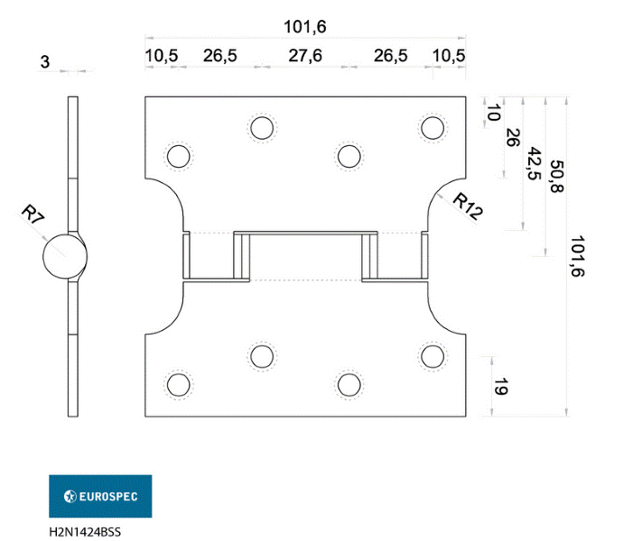 Home » Hinges » BUTT HINGES » Parliament Hinge Grade 13 101x101mm Stainless (HINGE)