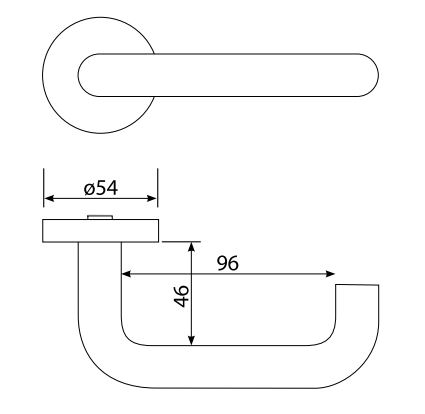 A 19mm diameter lever return to door style that meets the requirements of BS EN 8300The 52mm diameter rose is a push on style.