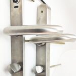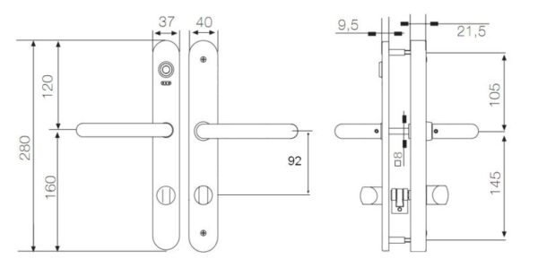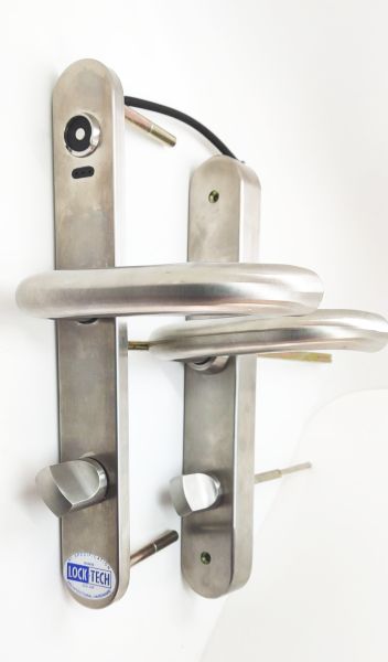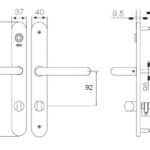 Both handles free to operate latch and lift deadbolts at 92mm centres. U shaped lever