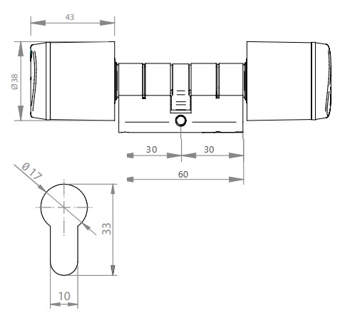 Geo Euro double cylinder 30/30mm Mifare reader.