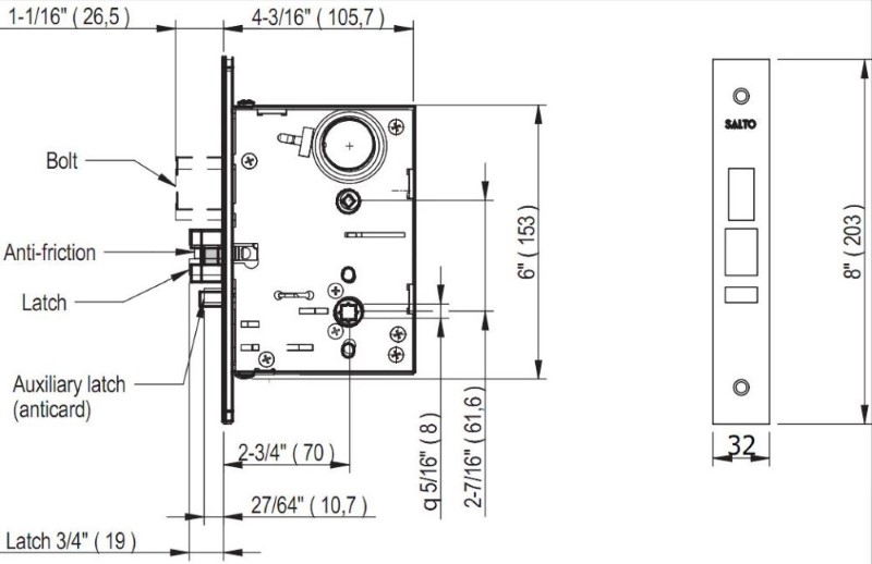 SALTO ANSI mortise lock with latch and deadbolt. with panic function