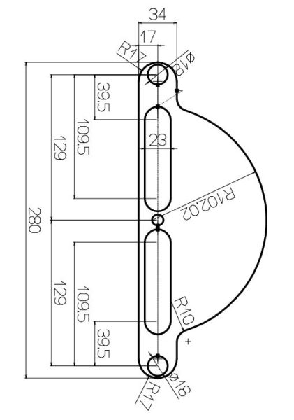 Lock-Tech door pull. Plate fits behind Salto. 115mm wide half round offset pull.