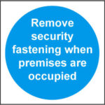 Text: ‘Remove security fastening when premises are occupied’.