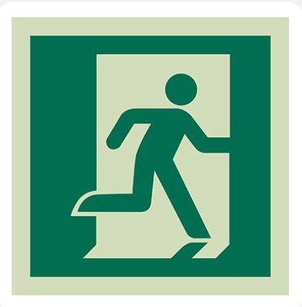 Running Man sign (to right). Self-adhesive. 150x150mm. Photoluminescent.