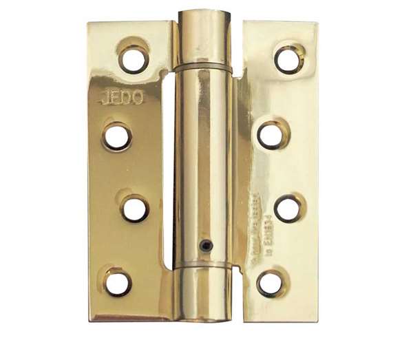 Spring Hinge Single Action (PK-3). 102 x 76 x 2.7mm. Maximum door weights up to 60 Kg. ½ Hour fire tested but not CE marked therefore should not be used for fire doors. 3 hinge pack. Finish: Electroplated Brass
