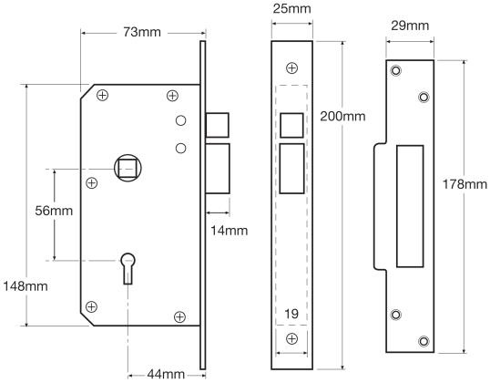 UNION 3K70 Security Range 5 Detainer Mortice Sashlock (2.3/4in) combining a key operated deadlocking action with the facility for using handles. Key and handle operation from both sides of the door. Masterkeyable with other detainer locks.