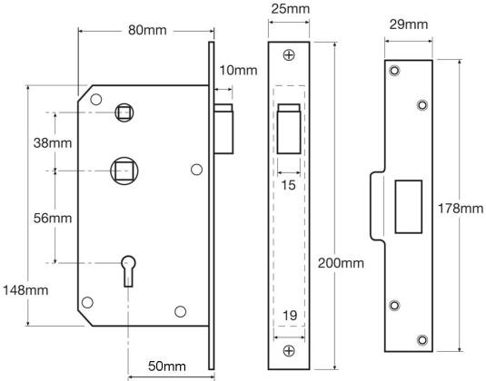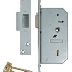 Security Range 5 Detainer Mortice Deadlocking Latch (3in) suitable for external wooden doors where slam action is required. Automatic deadlocking action, the snib can be used to hold back. Handle fitted to inside only – can be secured by key from either side. Masterkeyable. Can be modified for use as a fire escape lock.