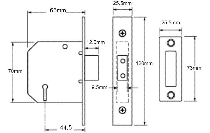 Suits wooden doors hinged on the left or right and requiring key operation only. Deadbolt locked or unlocked by key from either side. Made in the U.K.