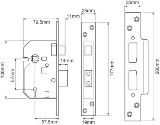 5 Lever BS 80mm Sashlock with 20mm Extended Throw.