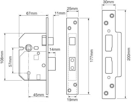 5 Lever BS 67mm Sashlock with 20mm Extended Throw.