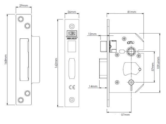 STRONGBOLT BATHROOM LOCK 57mm Centres 5mm T/Turn Follower 57mm Backset 81mm Case Depth SS