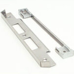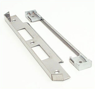 A rebated component set is used to convert a mortice lock with a flat forend, into a full rebated lock.