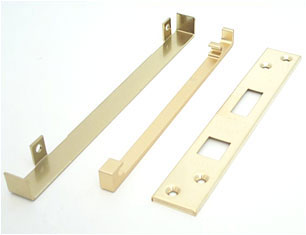 A rebated component set is used to convert a mortice lock with a flat forend, into a full rebated lock.