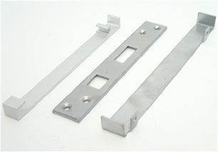 A rebated component set is used to convert a mortice lock with a flat forend, into a full rebated lock.