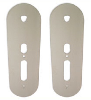 Lock-Tech cover plate. Plate to sit behind Salto to hide marks from previous door furniture etc. 110mm wide. Satin stainless steel finish.