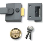 Standard security lock with deadlocking by snib. Key operation from the outside. Lever handle operation from inside.