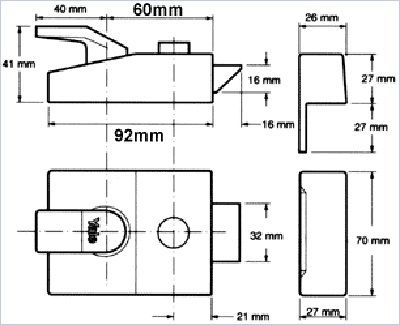 Security lock with manual deadlocking by reverse turn of key in outside cylinder (cylinder not supplied). Key operation from the outside with cylinder (cylinder not supplied). Handle operation from inside.