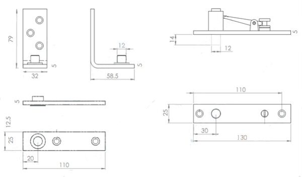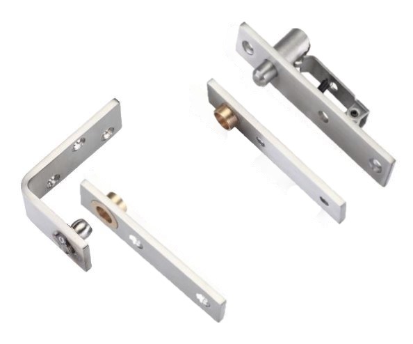 Door Pivot Set. For emergency use in hospitals, nursing homes or wherever the ill or infirm run the risk of falling and blocking an inward opening bathroom or toilet door. This specially designed double action pivot set will allow the door to swing in either direction. Specifically designed for use with an Emergency Release Door Stop. Finish: Type 304 Satin Stainless Steel.